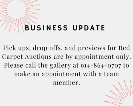 Pick ups, drop offs, and previews for Red Carpet Auctions are by appointment only. Please call the gallery at 914-864-0707 to make an appointment for pick up.​